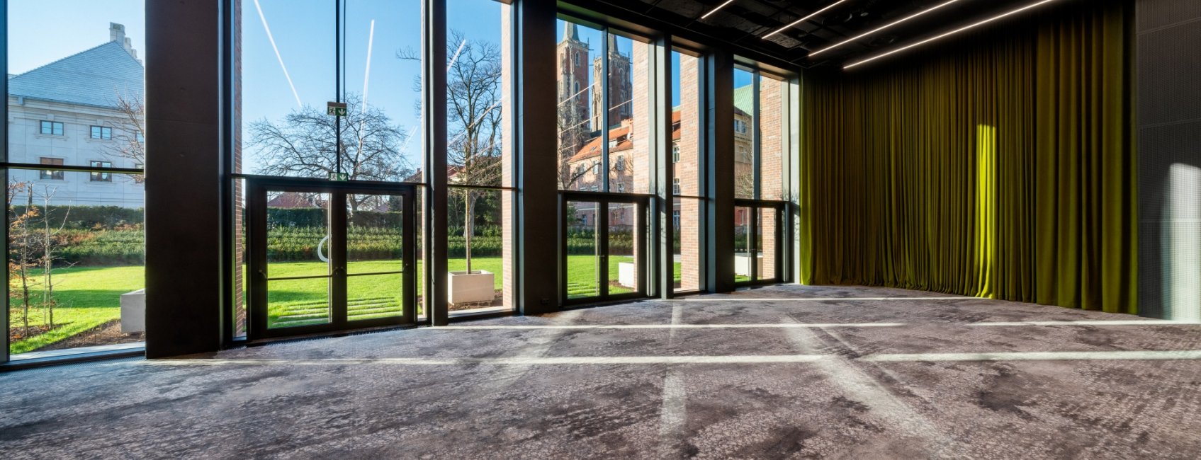 The Concretum Ballroom offers an area of almost 500 square meters, so it is one of the largest of its type in Wrocław. Thanks to this, in addition to business meetings or training, you can freely organize corporate banquets and unforgettable concerts that will remain in the memories of the participants for a long time.